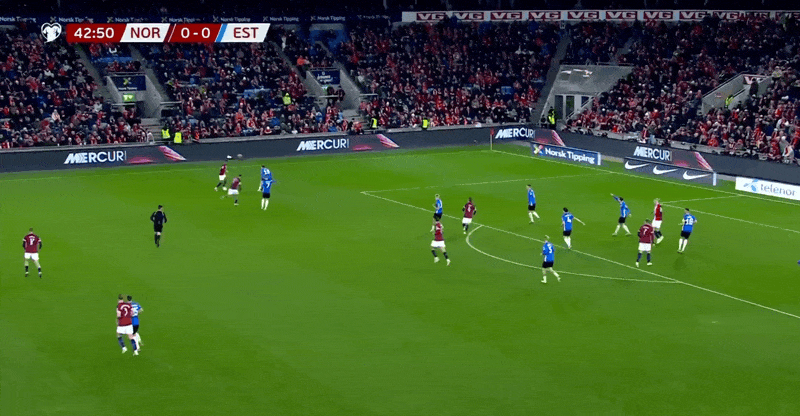 37' Indefeso! O ataque selvagem da Noruega falhou em quase metade do jogo, e o capitão Haaland estendeu as mãos para reclamar